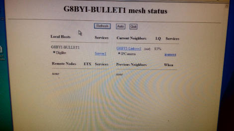 As to hardware needed thats easy too. Ubiquiti devices like their Bullet , Nano and AirGrid 2.4GHz and 5.4GHz wifi units can be reprogrammed to work as nodes. As can the old WRT54G, WRT54GL and WRT54GS units. Even the humble Raspberry Pi can be configured as a node. So there is no excuse about not having access to hardware. On my QTH mast I have a permanent Node fitted with a 18dbi omni H-Pol antenna ,that anyone in range should be able to see and access.